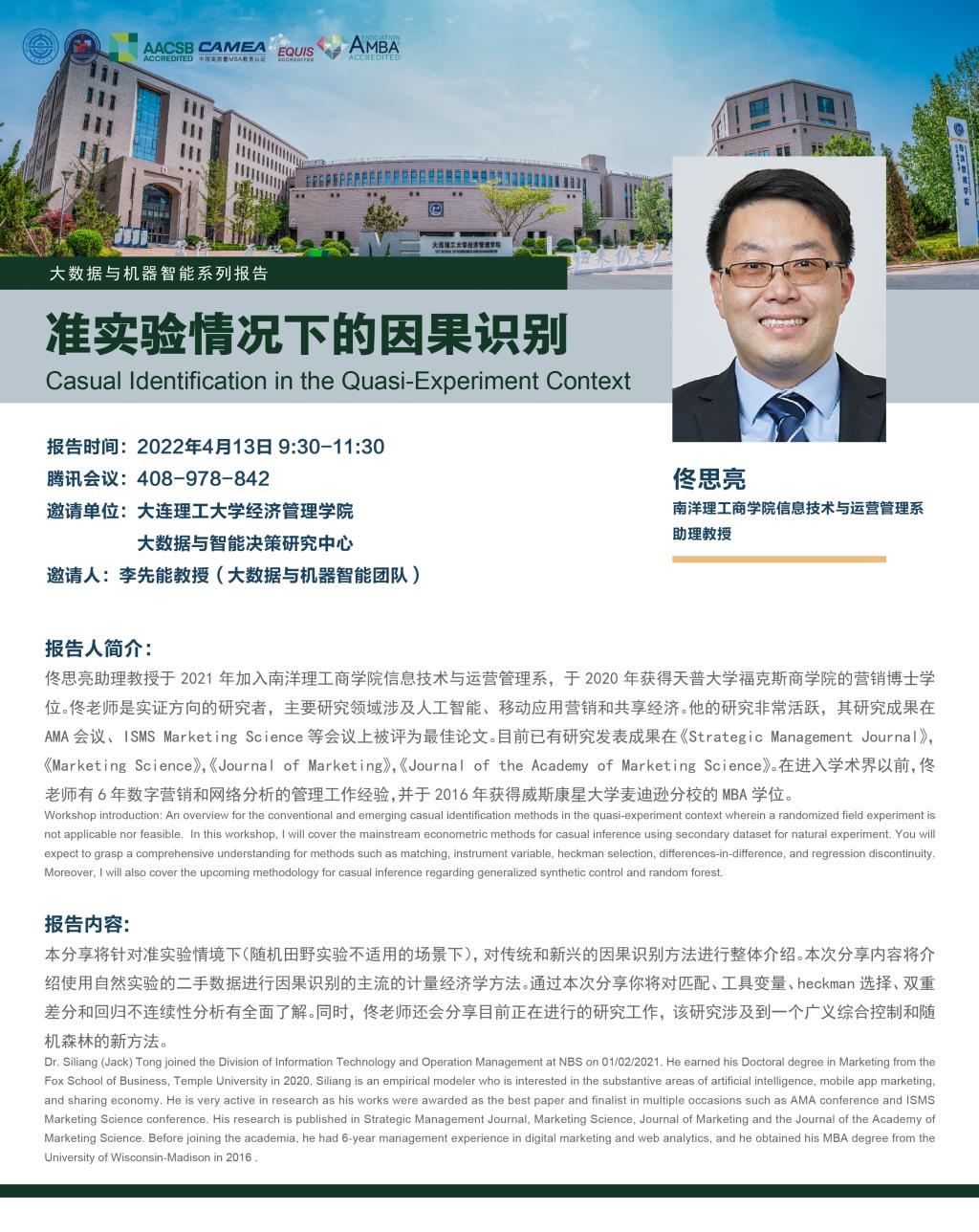 本分享将针对准实验情境下(随机田野实验不适用的场景下),对传统和新兴的因果识别方法进行整体介绍。本次分享内容将介绍使用自然实验的二手数据进行因果识别的主流的计量经济学方法。通过本次分享你将对匹配、工具变量、heckman选择、双重差分和回归不连续性分析有全面了解。同时,佟老师还会分享目前正在进行的研究工作,该研究涉及到一个广义综合控制和随机森林的新方法。