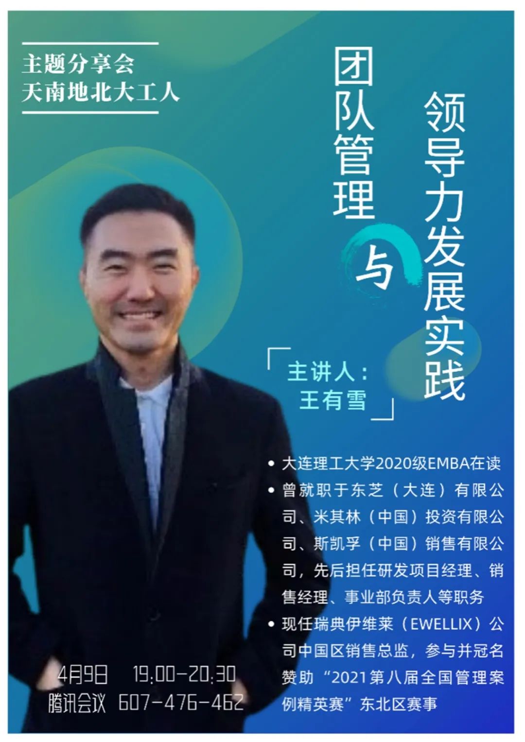 现任瑞典伊维莱(EWELLIX)公司中国区销售总监,参与并冠名赞助“2021第八届全国管理案例精英赛”东北区赛事;