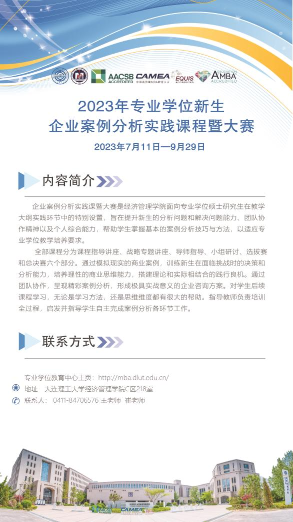 企业案例分析实践课暨大赛是经济管理学院面向专业学位硕士研究生在教学大纲实践环节中的特别设置,旨在提升新生的分析问题和解决问题能力、团队协作精神以及个人综合能力,帮助学生掌握基本的案例分析技巧与方法,以适应专业学位教学培养要求。