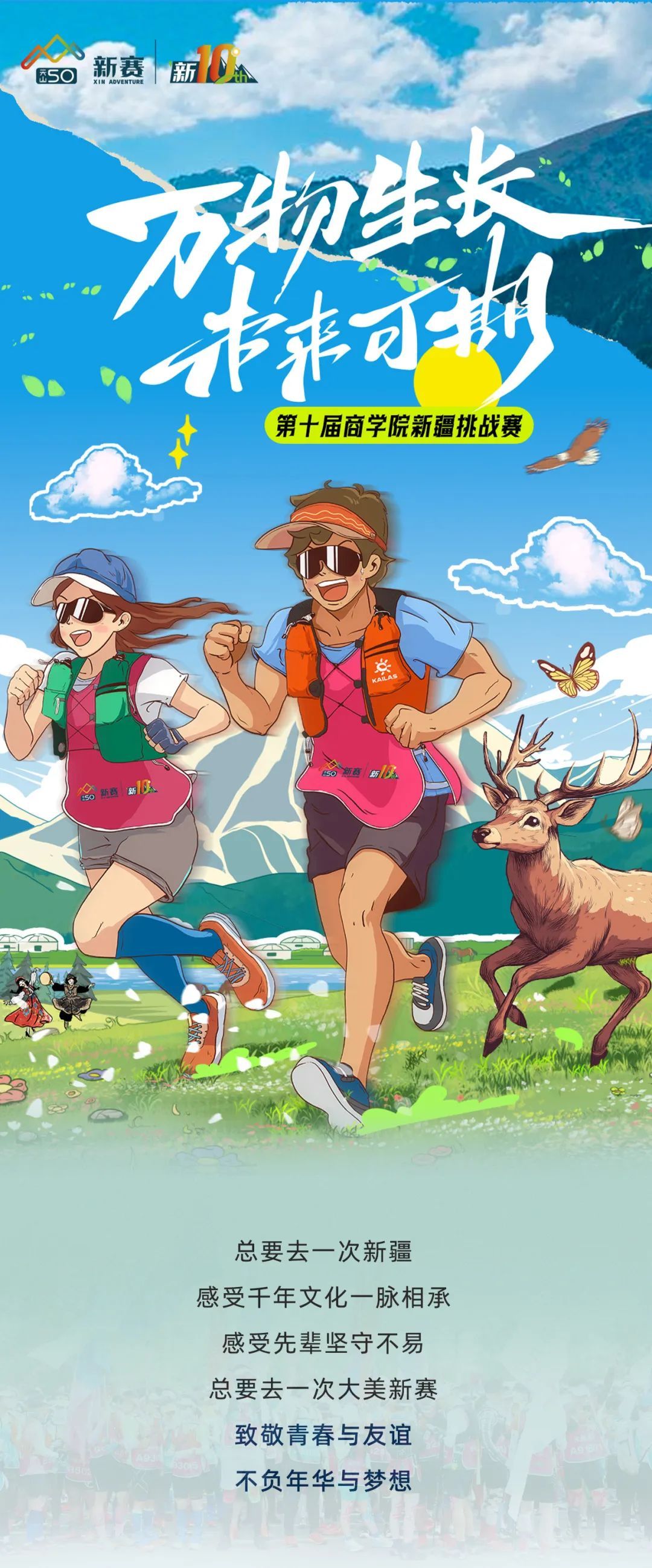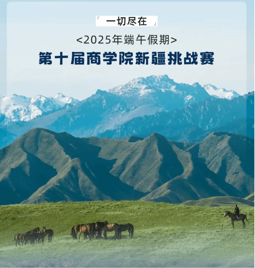 商学院新疆挑战赛,简称“新赛”,被称为商学院大美赛事。首届赛事于2016年6月在新疆举办,截至目前已成功举办9届。赛事定位于商学院人群,增强文化交流,促进“一带一路”经济建设,搭建文化交流平台,倡导自然和谐与体育竞技相结合的赛事理念。